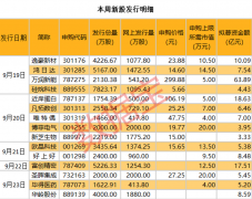 本周迎来15只新股申购,单周可打新股数量创年内新高;发行节奏来看,下半年以来平均单周发行新股数量近10家。 证券时报数据宝统计,根据发行安排,本周共15只新股陆续发行,今日